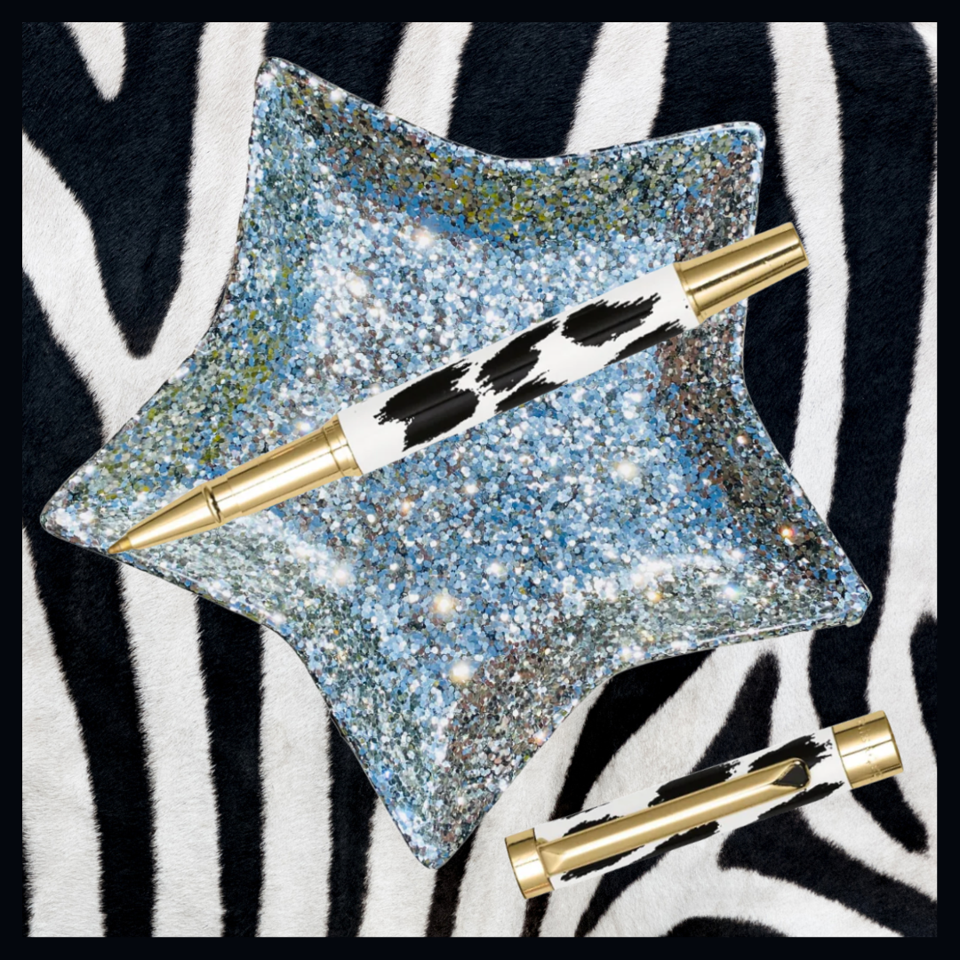 Meet your new writing wonder! This wild-at-heart Luxe Ballpoint Pen from Kate Spade New York is where fierce fashion meets stationery dreams. Dressed to impress in a glam animal print and shimmering gold details, she’s bold, stylish, and totally steal-worthy (but hands off – she’s yours).